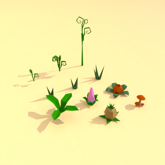 12 plants: 4 Jurassic flowers, 4 plants, 3 diferent grass a mushroom.